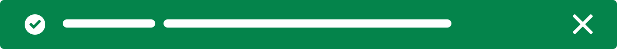 Toasts persist at the top of the page regardless of scrolling, and they are visible until a user dismisses them or the defined duration elapses. They show 1–2 full sentences (no truncation), including an inline link (when appropriate), and an X to close. Toasts on desktop include an icon denoting the type of message, but toasts on mobile don’t include one.