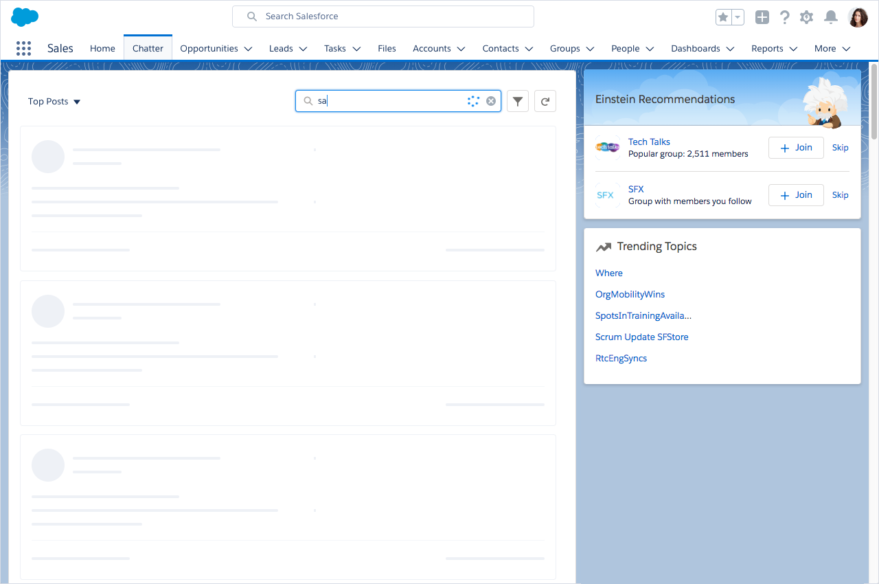 With in-context search, users can refine content on a page to find the correct information without having to context-shift and navigate away when using global search. Core examples of in-context search are in list views and feeds.